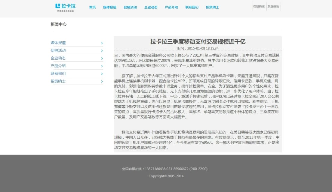 拉卡拉成立于2005年,是國(guó)內(nèi)首批獲得央行頒發(fā)牌照的第三方支付企業(yè)、國(guó)內(nèi)領(lǐng)先的金融科技企業(yè)